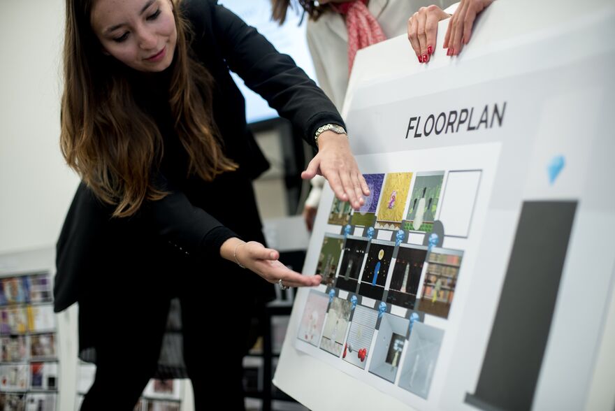 At the same time, second-year students in the BBA Strategic Design and Management program worked directly with a curator and an architect to imagine concepts for Let Her Shine, an exhibition of the looks created by the BFA Fashion Design students. (Visit the Parsons Paris blogpost to see more of the students’ fashions.) BBA students were challenged to develop concepts enabling the designers, who represented 12 different nationalities, to both showcase their fashion creations and share their reflections on cultural notions of beauty ideals. The exhibition was presented at the inaugural Parsons Paris gala, held at the Place Vendôme, the first home of Parsons Paris, established in the 1920s.