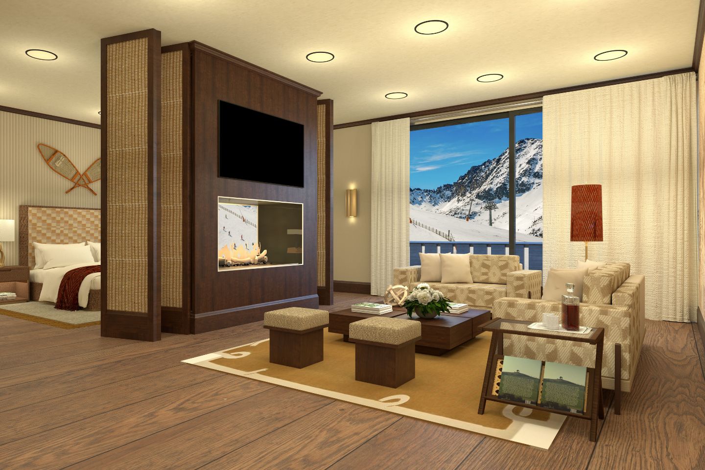 I designed each suite to cocoon guests in comfort and serve as a haven in which to retire after an exhilarating day spent on the slopes or hiking around the lake. Guests can choose one of six junior suites, with balcony views of the picturesque town, or opt for one of three spacious and elegant mountain suites, with open-plan layouts including a roaring fireplace and balconies offering views of the majestic mountains. In either case, an oasis of serenity awaits.