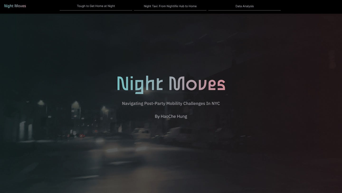 The thesis highlights transportation as a vital facilitator, showing how modes of transit such as subways, Citi bikes, and taxis foster connectivity, safety, convenience, and cost-effectiveness in the nocturnal landscape. Through visual representations and analyses of night cab ridership, subway usage, and demographic shifts, the study provides a comprehensive picture of the intertwined dynamics of nightlife and transportation, offering valuable insights for urban planners, policymakers, and residents alike.