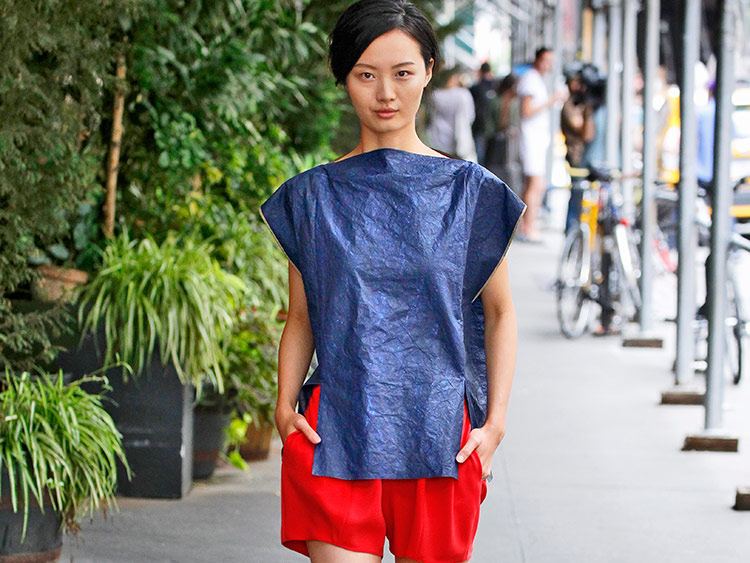 An example is found in her Crackle Finish Box Shaped Top, shown above. The piece, from Teng’s Spring 2016 collection, is created with a zero-waste pattern, yielding no excess fabric. It features her signature construction and a silhouette that flatters while reflecting its designer’s inspirations, which include fine arts, nature, and film. “My purpose,” Teng says, “is to clothe, enhance, empower, and delight.”